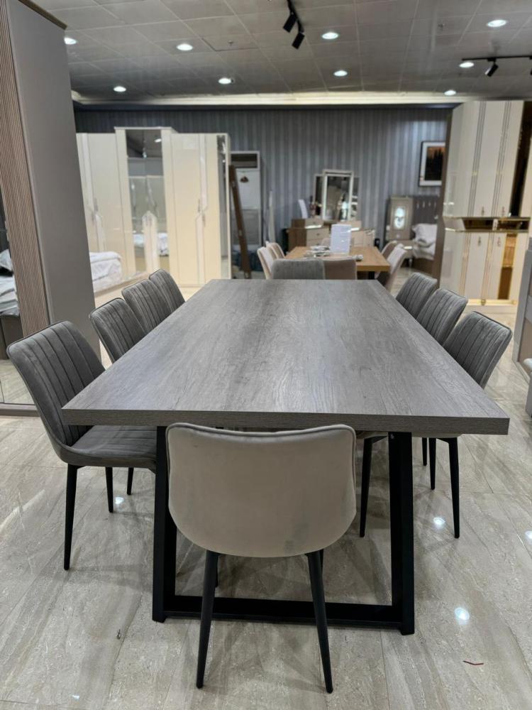 طاولة طعام فريدة من نوعها السطح الخامة خشبي بالكامل الكراسي قماش عرضه قواعد متينةمقاس الطاولة 240*120 الارتفاع 75 سم