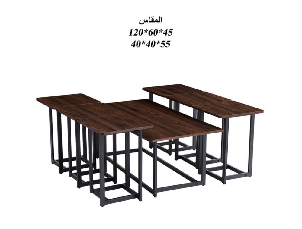 مطلوب التجميع طقم طاولات مكون من 7 قطع الخامة السطح خشب صيني مقاس الكبيرة الطول 120 سم العرض 60 سم الارتفاع 45 سم مقاس الخدمة الطول 45 سم العرض 45 سم الارتفاع 55 سم