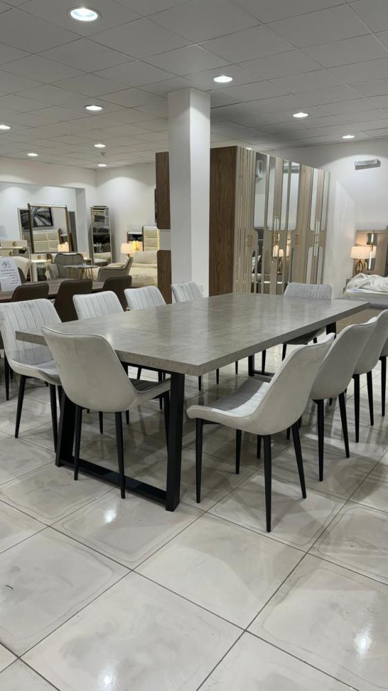 طاولة طعام فريدة من نوعها السطح الخامة خشبي بالكامل الكراسي قماش عرضه قواعد متينةمقاس الطاولة 240*120 الارتفاع 75 سم