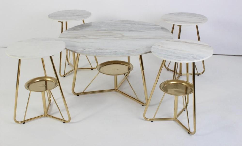 طقم طاولات 5 قطع سطح بورسلان استيل ذهبي