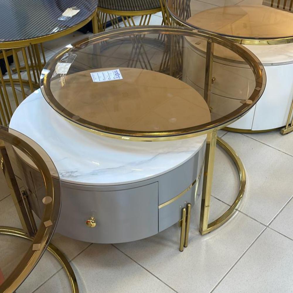 طقم قطعتين استيل ذهبي زجاج شفاف عسلي/Two pieces set of gold steel transparent glass honey