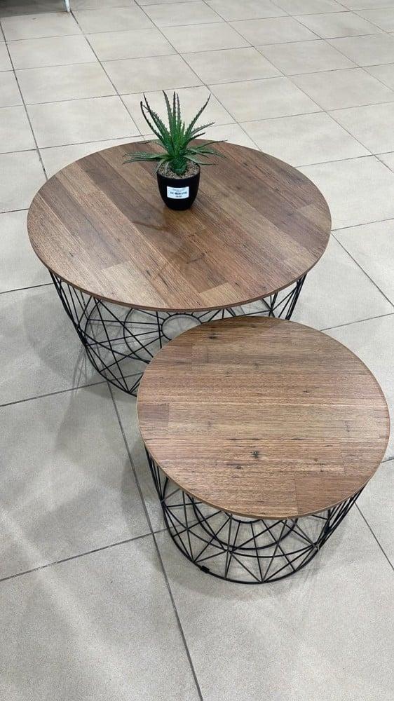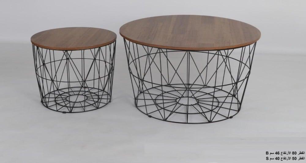 طقم قطعتين سطح خشب قاعده حديد اسود