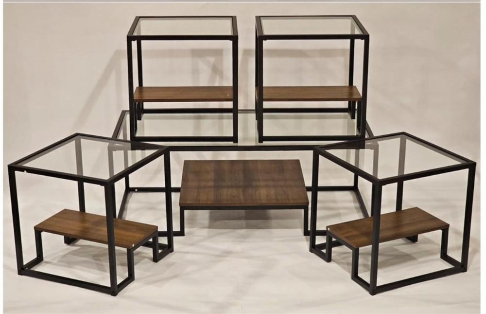 طقم 5 قطع دورين سطح زجاج خشب بني