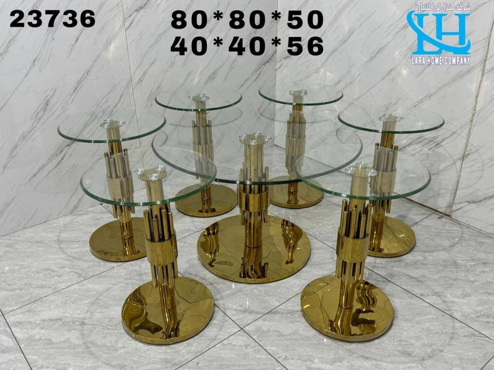 - نوع المنتج:طقم طاولات 7 قطع استيل ذهبي