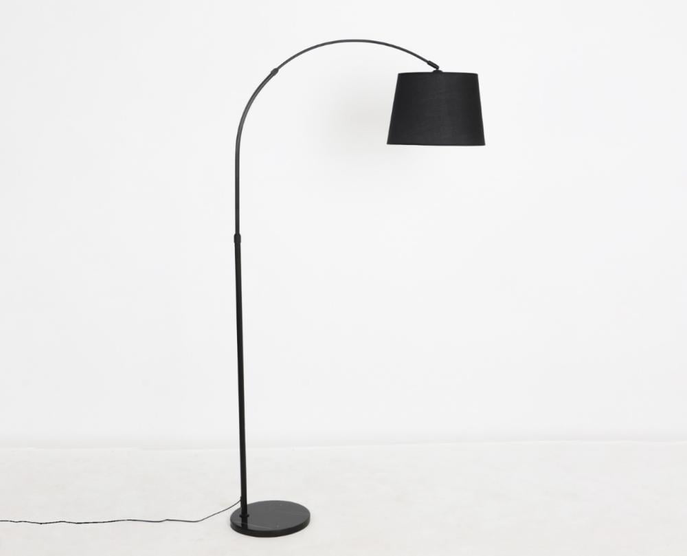 - غطاء المصباح: قماشي أسود لتوزيع الإضاءة المركزة بشكل أنيق.